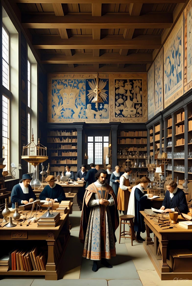 And, in line with what we saw with our fictional friends, there was division of labor, there was a certain amount of specialization and responsibility. But here’s the kicker, at the same time, there was also interdisciplinary cross-pollination and a significant overlap of remits, as I hinted above. This was indeed the fertile ground that enabled the emergence of the Renaissance Man - a multifaceted, cross-disciplinary, skilled polymath, cognizant of and conversant in a wide variety of domains, in the sciences as much as the arts. (And yes, rest assured I’ll get to that most representative and quintessential of such a Renaissance Man with a deep dive or three - you have the logo of my Substack to vouch for it!)